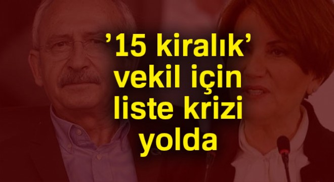 Bu milletvekilleri, ya İYİ Parti’den istifa edip yeniden CHP’ye katılacak ya da İYİ Parti’nin aday listesinde yer alıp, seçim barajına takılma riski ile karşı karşıya kalacak.’15 kiralık’ vekil için liste krizi yolda