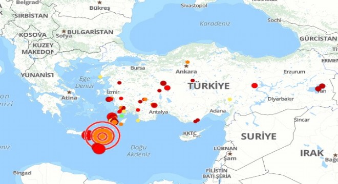 Boğaziçi Üniversitesi Kandilli Rasathanesi verilerine göre, saat 12:24’de  Akdeniz Girit Adası Açıkları'nda, meydana gelen deprem yerin 16.2 kilometre derinliğinde gerçekleşti.