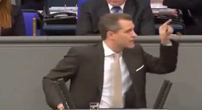 Hükümetin, susarak Türkiye Cumhurbaşkanı Erdoğan'a itaat ettiğini, diz çöktüğünü söyleyen Sol Parti vekillerine cevabı, Almanya için Alternatif (AfD) Partisi vekili Petr Bystron verdi.