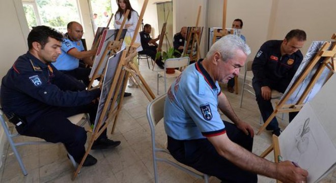 İtfaiye Dairesi Başkanlığı Eğitim Merkezi’nde düzenlenen kursta resim çalışmalarına, karakalem çizgilerle hareketsiz objeleri çizerek natürmort ve portre çalışmalarıyla başlayan Ateş Adamlar, daha sonra da su bazlı akrilik boya ve yağlıboya ile çalışmalarını sürdürecek. Ortaya çıkacak eserler ise, 25 Eylül-1 Ekim tarihleri arasında kutlanacak İtfaiye Haftası’nda sergilenecek.