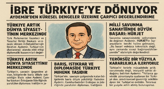 Türk Parlamenter Gazeteci ve Yazarlar Birliği Başkanı ve önceki dönem milletvekillerinden İbrahim Aydemir, Türkiye’nin uluslararası alanda elde ettiği diplomatik kazanımları değerlendirerek, “Dünya siyaseti artık Türkiye merkezli yeniden dizayn ediliyor” dedi. Aydemir, Suudi Arabistan’daki zirvede ABD’nin Suriye’ye yönelik yaptırımların kaldırılması yönünde yeşil ışık yakmasının Türkiye’nin etkili ve ilkeli dış politikasının bir sonucu olduğunu kaydetti.