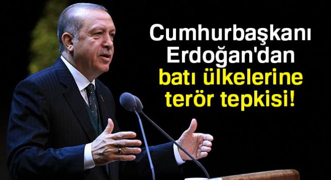 Batı dünyasına tepki gösteren Erdoğan, “Geçen birine söyledim telefonda. Siz Cezayir’de 5 milyon insanı katletmediniz mi? Önce bunun hesabını verin. 5 milyon insanı katlettiniz, şimdi kalkıyorsun Suriye ile ilgili bana akıl veriyorsun. Libya’da, Ruanda’da yaptınız. Bunun hesabını verdiniz mi? Hayır vermediler. Vermeyecekler de. Bir diğer bakıyorsun başka ülkede. Eğer Müslüman olursa bu Müslümana kestikleri fatura çok ağır. Batı dünyası İslam karşıtlığı üzerinden kendi ideolojisini, kendi hayat biçimini tahkim etmek istiyor. Modern insanın buhranlarına cevap verebilecek yegane din olan İslam, proje mahsulü teröristler üzerinden yaftalanmaya, lekelenmeye çalışılıyor. İşte bunlar son dönemlerin proje terör örgütleridir. Bunlarla bunu yürütüyorlar” diye konuştu.