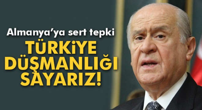 Almanya'nın PKK ile yatıp FETÖ ile kalktığını belirten Bahçeli, "Koynunda Mehmetçik katillerini barındıranlar doğrudan doğruya dökülen şehit kanlarında iz ve parmakları olan maskeli Vandallardır. Avrupa ülkeleri kültürde Grek, dinde Hristiyan, hukukta Roma’ya kökten bağlıdır. Sırf bu nedenle de Müslüman Türk milletine asırlardır ters bakmakta, bölüp parçalamak için fırsat kollamaktadır. Karşımızda saf saf dizilip, canilerin arkasına saklanarak Türkiye’ye zehir kusanlara, fitne saçanlara son nefesimize, son ferdimize kadar haklı mücadelemizi sürdürmezsek yaşamak bize haram olsun. Almanya’nın yolu yol değildir, acilen dönmelidir. Tüm dünya bilsin, tüm dünya aklında tutsun. Türk milleti birdir, Türkiye düşmanca tutum ve davranışlara karşı tek yürek, tek bilek, tek sestir. Avrupa duy sesimizi, bu ses Türk’ün hiç dinmeyen ayak ve kudret sesidir” diye konuştu.