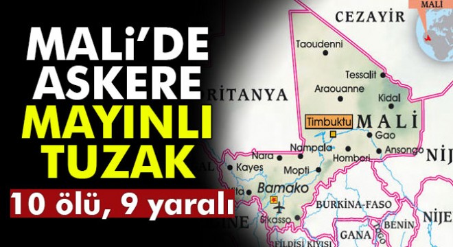 Mali'de askeri konvoyun geçişi sırasında, yola döşenen mayının patlaması sonucu 10 asker öldü, 9 asker yaralandı.