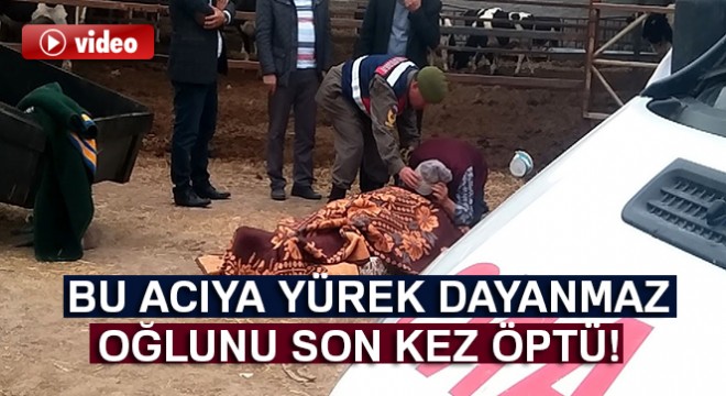 Ölen oğlunun üzerindeki battaniyeyi kaldırarak son kez öpüp sarıldı