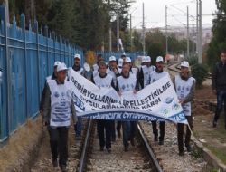 ANKARA GAZETESİ / Birleşik Taşımacılık Çalışanları Sendikası (BTS), demiryollarının özelleştirilmesini rayların üzerinde yürüyerek protesto etti.