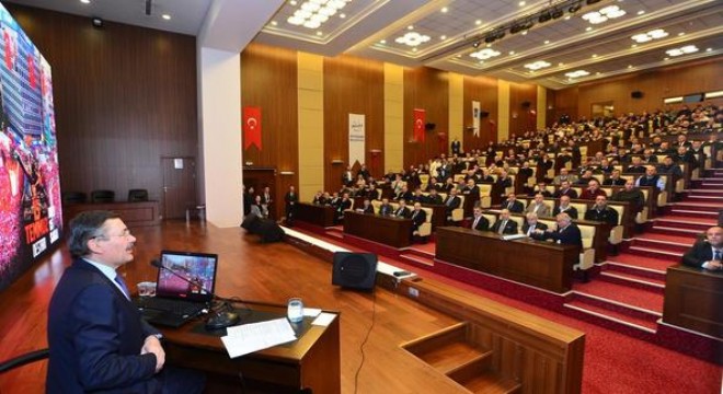 Büyükşehir Belediye Başkanı Melih Gökçek, özel halk otobüsü şoförlerine 15 Temmuz darbe girişimi ile ilgili sunum yaptı.