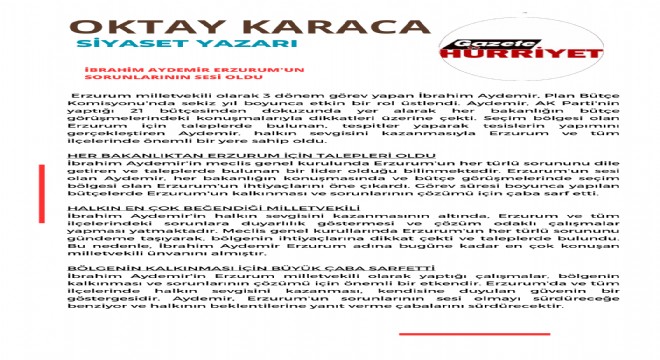 İbrahim Aydemir'in Erzurum milletvekili olarak yaptığı çalışmalar, bölgenin kalkınması ve sorunlarının çözümü için önemli bir etkendir. Erzurum'da ve tüm ilçelerinde halkın sevgisini kazanması, kendisine duyulan güvenin bir göstergesidir. Aydemir, Erzurum'un sorunlarının sesi olmayı sürdüreceğe benziyor ve halkının beklentilerine yanıt verme çabalarını sürdürecektir.