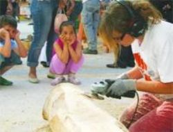 Çankaya Belediyesi tarafından Sakarya Caddesi’nde halka açık olarak düzenlenen ahşap heykel sempozyumu yetişkinlerin olduğu kadar çocukların da ilgisini çekiyor. Aileleriyle alışverişe çıkan çocuklar heykel sempozyumunun yapıldığı alana gelince büyülenmiş gibi çakılıp kalıyor. Çocukların bu ilgisi, işine odaklanan sanatçıların da dikkatinden kaçmıyor. Keski ve tokmağı nasıl kullanacağını öğrenen çocuklar, önümüzdeki hafta bitip sergilenecek olan heykellere bir çentik atmanın keyfini yaşıyor.