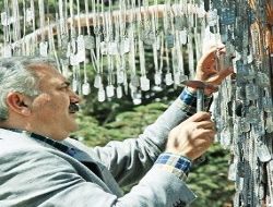 Vatanı korumak uğruna canlarını feda eden şehitler için bir yandan üzüldüklerini, ancak bir yandan da onların Allah katında çok iyi bir mertebeye ulaşmalarından mutlu olduklarını dile getiren Ünal, “Ancak ateş düştüğü yeri yakıyor. Bu ülkede artık anneler ağlamasın, biz de bu ağaca bu künyeleri çakmayalım. Böyle giderse zaten bu ağaç bu yükü taşıyamayacak” diye konuştu. Ünal daha sonra ülke çapında son bir yılda meydana gelen terör saldırıları nedeniyle şehit düşen 50 asker ve polisin künyelerini ağaca çaktı.