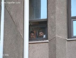 Cezaevine gönderilmeye bekleyen şahıslar bir süre duruşma salonunun camından dışarıyı izledi.ANKARA /