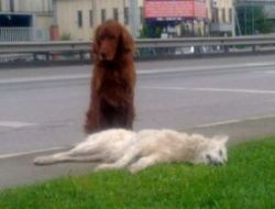 Bir süre eşinin etrafında dolaşan köpek, eşi kalkmayınca etrafına bakınarak havlamaya başladı. Erkek köpek, eşinin başında saatlerce bekledi. Vatandaşların ısrarlı kovalamasına rağmen bir an bile eşinin başından ayrılmayan köpek, kimseyi eşine yaklaştırmadı.