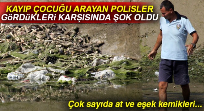 Adana'da sık sık at ve eşek operasyonu yapılan mahalle yakınından geçen sulama kanalında kayıp bir çocuğu arayan polisler, çok sayıda at kafası, at ve eşek kemikleri buldu.