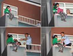 Kucağında bebeğiyle 3 katlı bir binanın balkonunda intihar girişiminde bulundu.