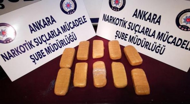 Pursaklar’da bir bakkal, kendisinden "siyah poşet" isteyen kişiden şüphelenerek durumu polise bildirdi. Belirtilen adrese giden polis ekipleri, şüpheli C.F.'nin elindeki çantada yaptığı aramada paketler halinde 5 kilogram eroin ele geçirdi. Çantadaki eroin paketlerini poşet içerisine aktaracağı belirlenen şüpheli gözaltına alındı. Şüphelinin emniyetteki işlemlerinin devam ettiği öğrenildi.