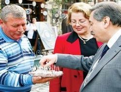 İlçedeki Yaşayan Müze’yi ziyaret eden  Köksal, ebru çalışması yaptıktan sonra Hacivat Karagöz Odası’nı gezdi.