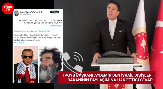 Cumhurbaşkanı Recep Tayyip Erdoğan’ın Rize’den yaptığı konuşmaya karşılık İsrail Dışişleri Bakanlığı’nın, Erdoğan’ı Saddam Hüseyin ile kıyaslayan ve tehdit eden paylaşımına Adalet ve Kalkınma Partisi Erzurum eski milletvekili İbrahim Aydemir’den çok sert bir yanıt geldi.
