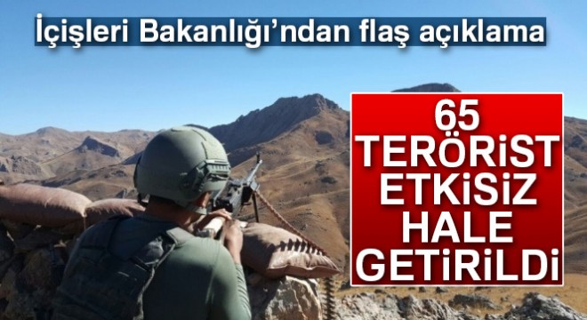 İçişleri Bakanlığı:  65 terörist etkisiz hale getirildi