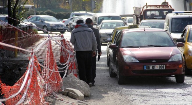 Dumlupınar Caddesi’ndeki Kurtuluş Köprüsü altında kalan kaldırımlar, Başkentray projesi çalışmaları sırasında yıkıldı. Yayalar, 4 aydır yoldan yürüyor.