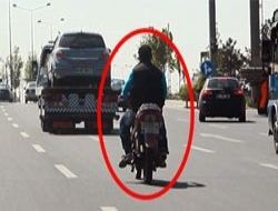 ANKARA / Hiçbir güvenlik önlemi almadan trafiğe çıkan motosiklet sürücüsü, saatte 110 kilometre hızla ilerlerken, araçların arasından “makas” diye tabir edilen yöntemle geçerek, diğer sürücülerin can güvenliğini hiçe saydı. Vatandaşlar, “Polis kasksız sürücülere bile anında onlarca lira ceza yazıyor. Ancak bu adamın umrunda bile değil. Canından olacak haberi yok” yorumunu yaptı.ANKARA /