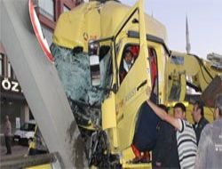 ANKARA GAZETESİ / Protokol yolunda seyreden Abdullah Yoncalık (49) yönetimindeki 06 RD 394 plakalı kurtarıcı kamyon, Pursaklar tünel girişinde önce refüje, ardından yön tabelasına çarptı.