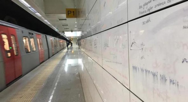 Kütüphane istasyonu yazı tahtasına döndü