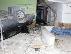 KIRIKKALE’de, kavşağa hızlı girince kontrolden çıkan otomobil, yolun karşısındaki avlu duvarını yıkarak geçtikten sonra evin balkonuna girdi. Sürücü yaralanırken, gürültüye uyanan ev halkı büyük korku yaşadı.