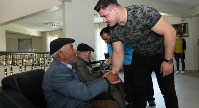 Dünya ve Avrupa şampiyonu ASKİ’li milli güreşçi Rıza Kayaalp, Ramazan Bayramı dolayısıyla, huzurevinde kalan yaşlıları ziyaret etti.