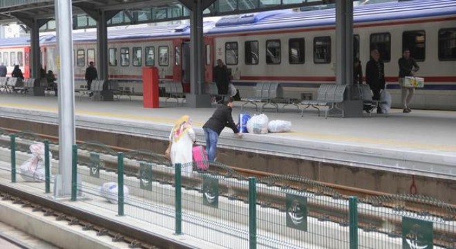 Ardından peronda bekleyen bir vatandaştan yardım isteyerek, raylar üzerinde birkaç sefer yaparak, bavullarını ve çantalarını karşı tarafa taşımaya başladılar. Türkiye Cumhuriyeti Devlet Demiryolları’nın (TCDD) önlem amacıyla hatlar arasına yerleştirdiği tel bariyerlerin bağlantı noktasından geçen iki vatandaş, ikinci rayları da aştıktan sonra 2’nci perona ulaştı. Olay anında 1’inci perondaki iki hatta da tren yanaşmadığı için şans eseri bir facia yaşanmadı.