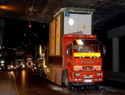 ANKARA / 06 DAL 96 plakalı beton trafo taşıyan kamyon, taşıdığı yük nedeniyle 4,30 metre yüksekliğindeki İstanbul  Yolu Yenimahalle Köprüsü’nün altından geçemedi. Kamyonun köprüye sıkışması nedeniyle yolda uzun araç kuyrukları oluştu. Araç, vinç yardımıyla yaklaşık bir saatte sıkıştığı yerden kurtarıldı.
