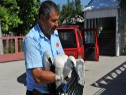 Yaralı yavru leyleği itfaiye kurtardı